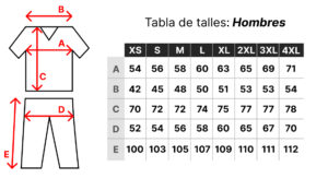 | Talle Pantalón | XS, S, M, L, XL, 2XL, 3XL, 4XL |
